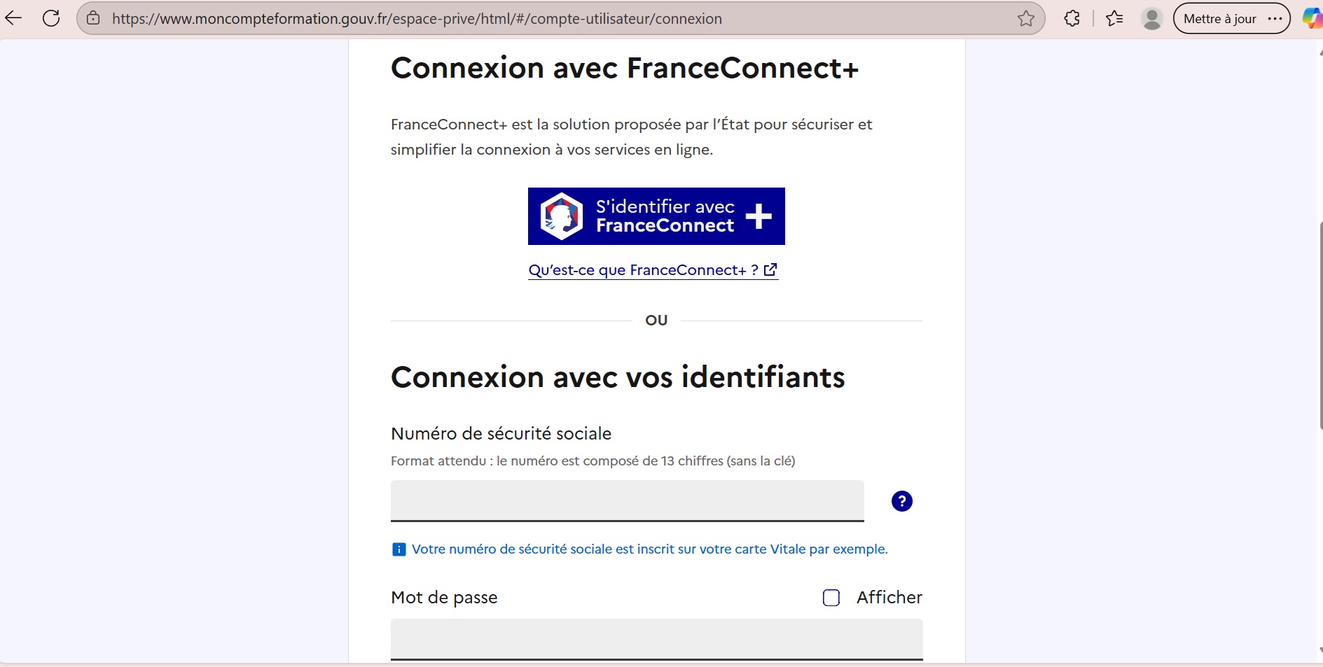 Connexion avec FranceConnect+ — bouton « S’identifier avec FranceConnect+