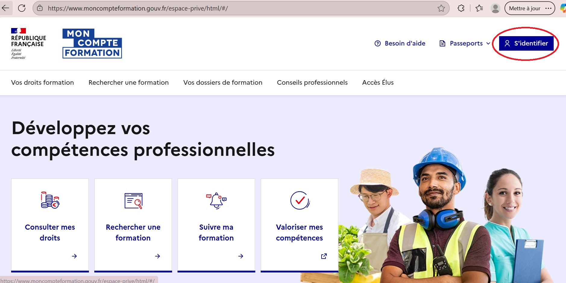 Page d’accueil MCF — bouton « S’identifier » (en haut à droite)